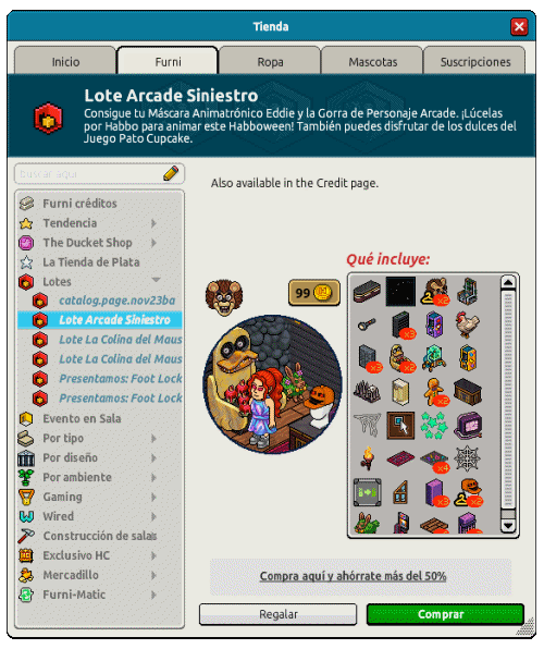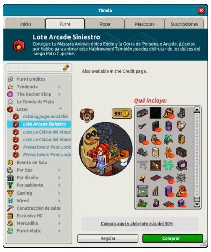 Disponible en el catálogo de Habbo → Pestaña Furni > Sección Lotes > Lote Arcade Siniestro.
