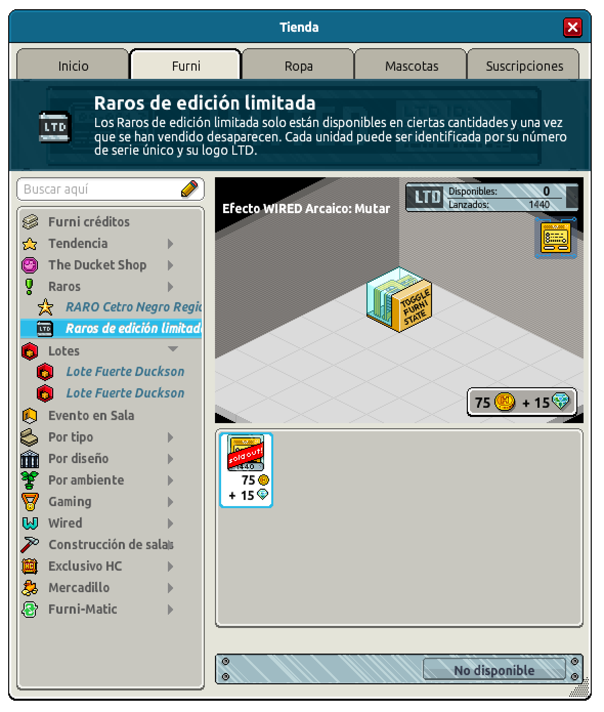 Ubicado en el catálogo de HabboPestaña Furni > Raros de edición limitada > Efecto Wired Arcaico: Mutar.