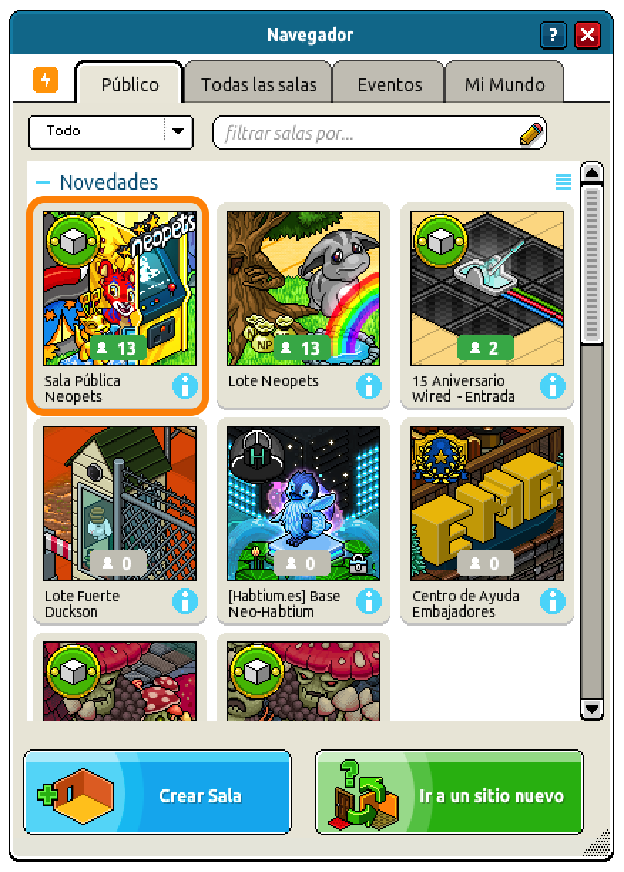 ¿Dónde encontrarla? La sala está disponible en el Navegador de Salas, dentro de la pestaña Público, en la sección Novedades.