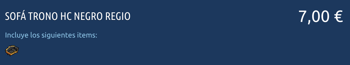 ¡Ha llegado un nuevo raro por compra directa! Se trata del Sofá Trono Negro Regio, un exclusivo furni que no querrás dejar pasar. Destaca por su diseño único y detalles que lo hacen imprescindible para cualquier colección.