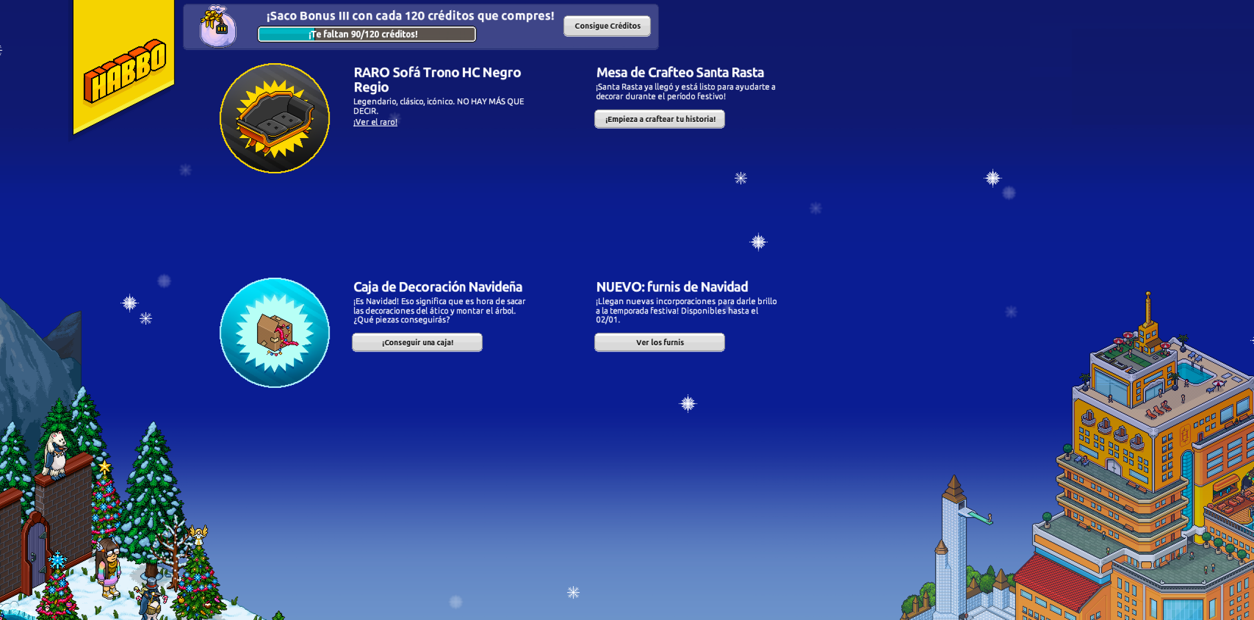 Prepárate para disfrutar al máximo de la magia invernal. ¡Crea, decora y vive un diciembre inolvidable en Habbo! Y no olvides pasarte por Habsite para estar al tanto de todas las sorpresas festivas que vienen.