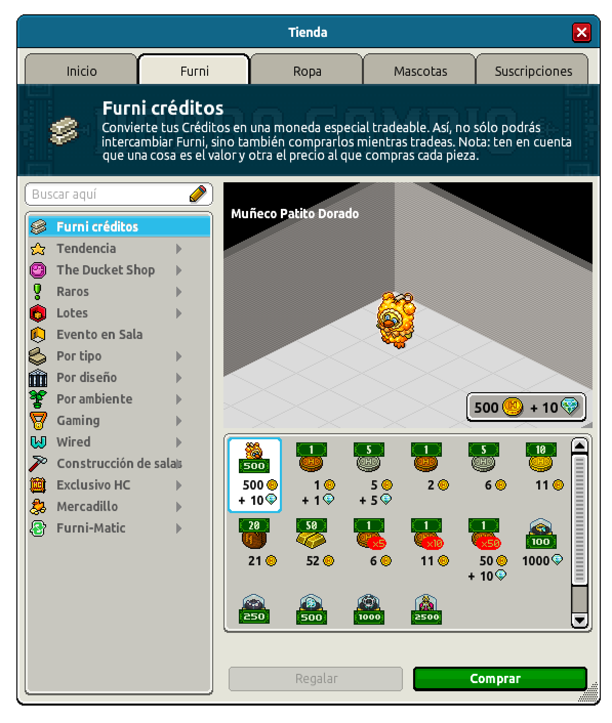 Disponible en el catálogo de Habbo → Pestaña Furni > Sección Furni Créditos.