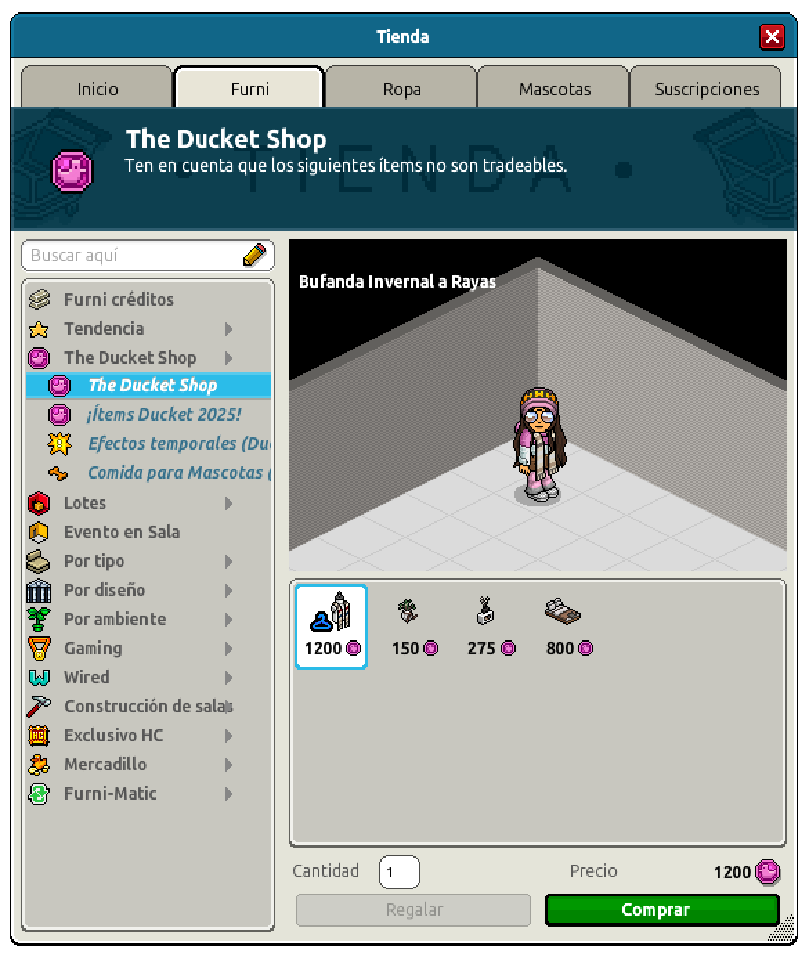 ¿Dónde están disponibles? En el catálogo de Habbo > pestaña Furni > Sección The Ducket Shop.