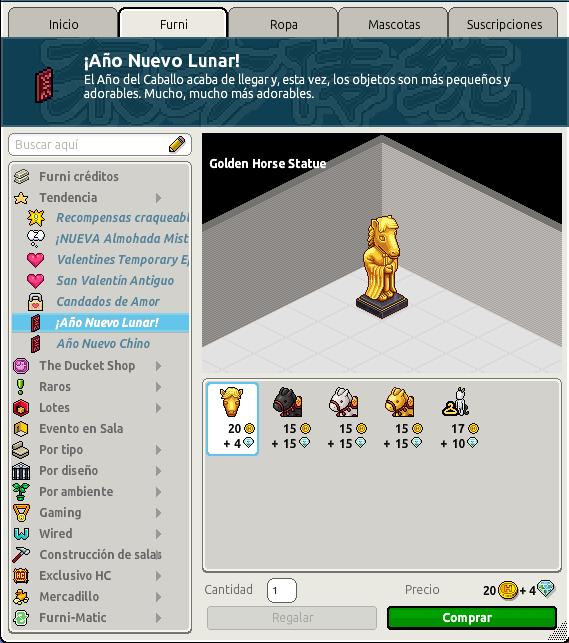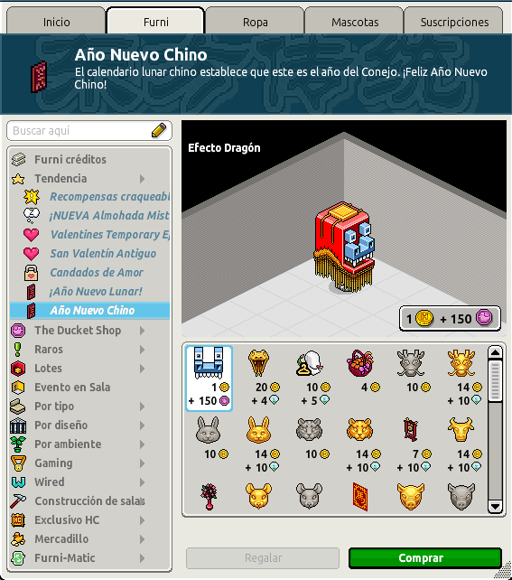 Si quieres descubrirlas, puedes encontrarlas en el catálogo de Habbo, dentro de la sección ¡Año Nuevo Lunar! o Año Nuevo Chino, donde ya están listas para ser adquiridas.