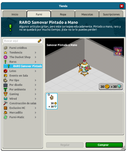 Disponible en el catálogo de HabboPestaña Furni > Sección Raros > ¡RARO Samovar Pintado a Mano!